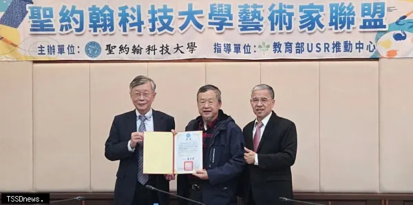 「美哉聖約翰,共創、共好成果展:藝術家走入校園聯展」26日於聖約翰科技大學校內何兆豐數位藝文中心(電資大樓B1)舉辦開幕活動。執行董事曾鴻鍊、校長唐彥博及校內相關主管與工作團隊出席。活動期間規劃圓桌會議、校園參訪、聯展開幕、藝術家現場揮毫與聯歡晚會等內容,促進教育界、藝術界與USR夥伴之間的深度交流。